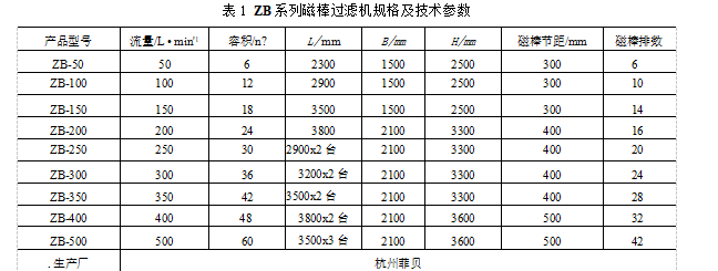ZB系列磁棒過濾機規(guī)格及技術(shù)參數(shù)見表1。