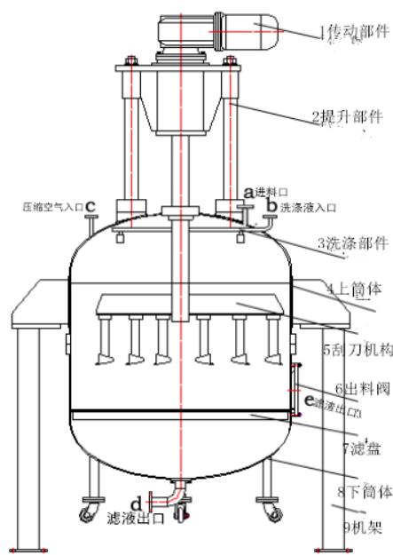 過濾洗滌二合一卸料是通過S型漿葉反推動使物料從側出料口自動卸出攪拌的正反轉是通過電機減速機帶動主軸轉動,調節液壓閥完成升降的速度,減速機可選國產和進口的。
