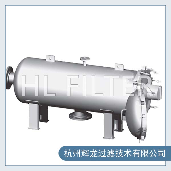 臥式大流量過濾器外殼進出口與過濾系統(tǒng)管路相連,連接時要遵循高進低出的原則,確保濾芯外側進水、內側出水