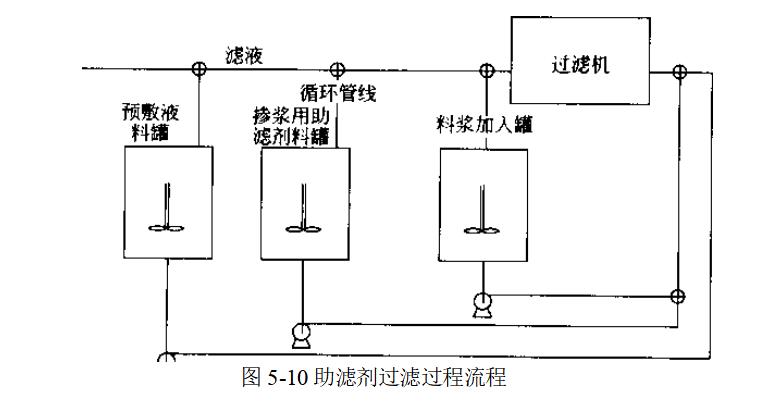 預敷過濾是清潔的助濾劑在主要的常規過濾機上的應用;即在沒有懸浮固體顆粒時利用助濾劑在過濾介質表面形成一層高孔隙度并均勻的濾餅層,然后將待處理懸浮液加入過濾機中.
