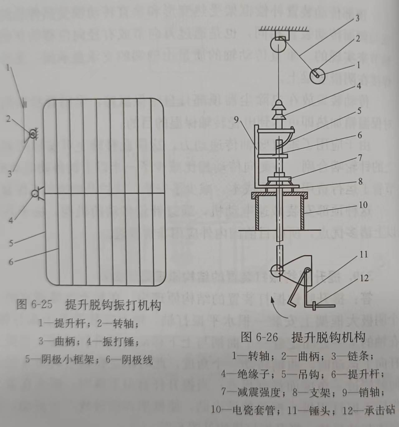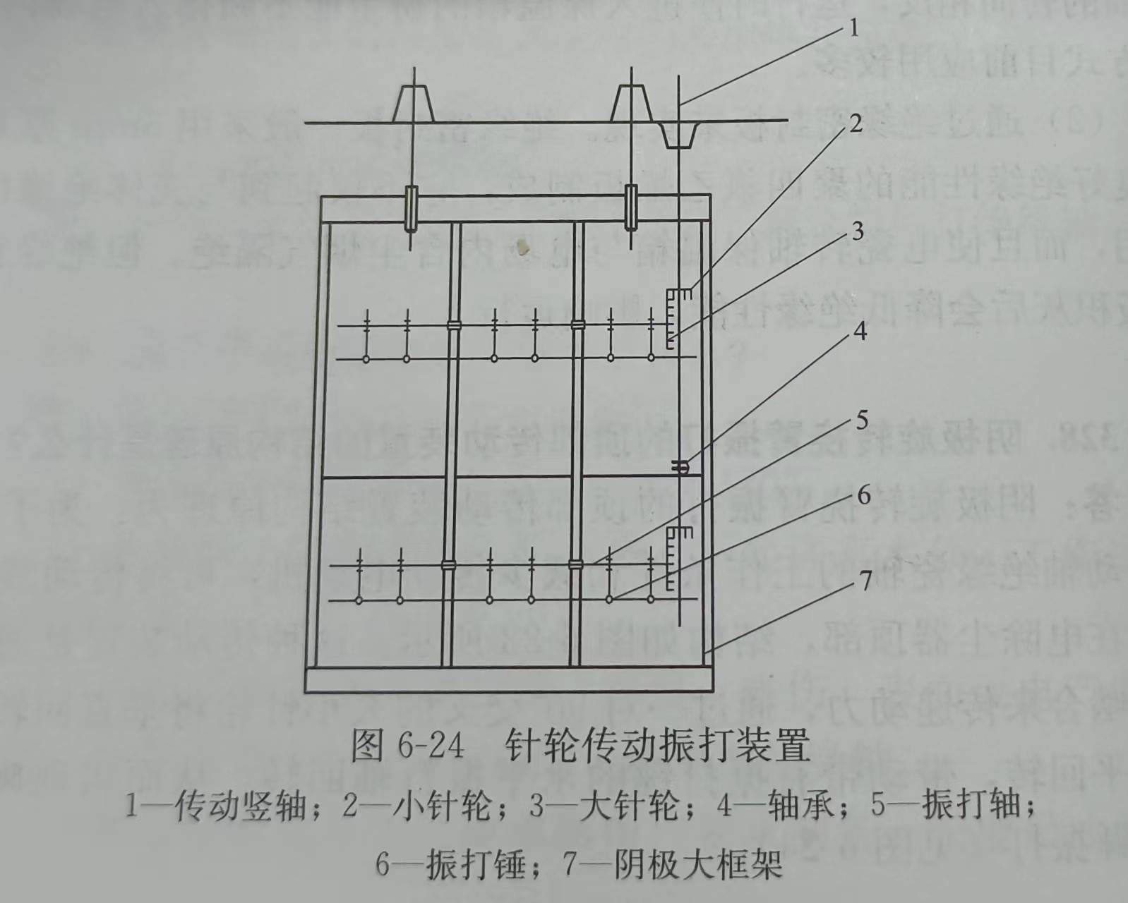 在每個電場或室的一個陰極大框架上安裝一根水平振打軸,軸上安裝著若干振打錘,在軸的某一處固定著一個曲柄與上下移動的提升桿鉸接.