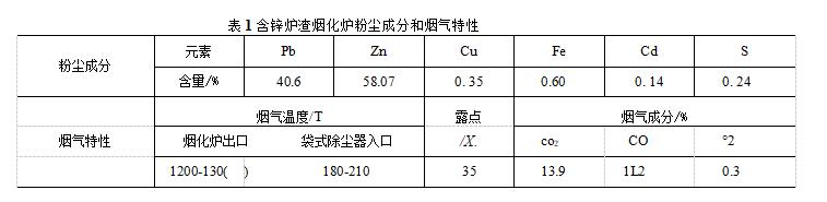 煙化爐粉塵成分和煙氣特性列于表煙氣先經過余熱鍋爐以回收熱量并降低溫度然后進入長袋低壓脈沖袋式除塵器收塵.