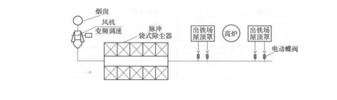 應用較為普遍的“二次煙塵”捕集方式,是在一次煙塵除塵系統的基礎上增設屋頂大罩,并適當圍封出鐵場周邊,形成二次煙塵除塵系統.