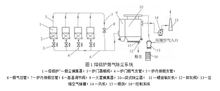 熔鋁爐除塵系統由煙塵捕集罩,輸氣管道及閥門,火星捕集器,袋式除塵器,風機,自動控制系統等部件組成.
