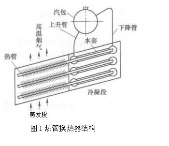 熱管是一種新穎的高效換熱元件它將一束封閉管束抽成真空,內灌入傳熱工質,利用蒸發(fā)段(熱端)的吸熱蒸發(fā)效應,冷卻高溫氣體,同時利用冷凝段(冷端)的放熱冷凝效應,加熱軟水汽化蒸發(fā).
