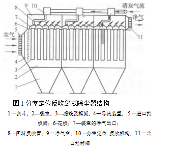 頂部振打袋式除塵器主要由箱體.灰斗和振打機構等組成除塵器內裝有電熱器.可在低溫或含濕量較大的條件下使用與頂部振打式相比.中部振打式對濾袋的損傷較小.