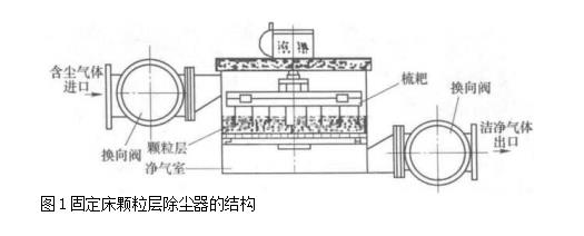 固定床顆粒層大多水平布置,由篩網或多孔的金屬板支撐,固定床過濾過程是一個非穩態過程.含塵煙氣進入潔凈狀態的固定床顆粒層時,顆粒濾料的過濾作用將粉塵阻留在顆粒層中.隨著過濾時間的增加.