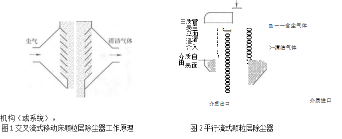 根據氣流方向與過濾介質顆粒移動方向的相對關系,移動床顆粒層除塵器可分為交叉流式,平行流式,逆流式三種型式.運行時其除塵效率和阻力保持穩定.是穩態過程.