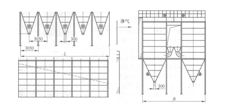 扁袋脈沖袋式除塵器同塵氣室,凈氣室,灰斗及噴吹裝置等部分組成.
