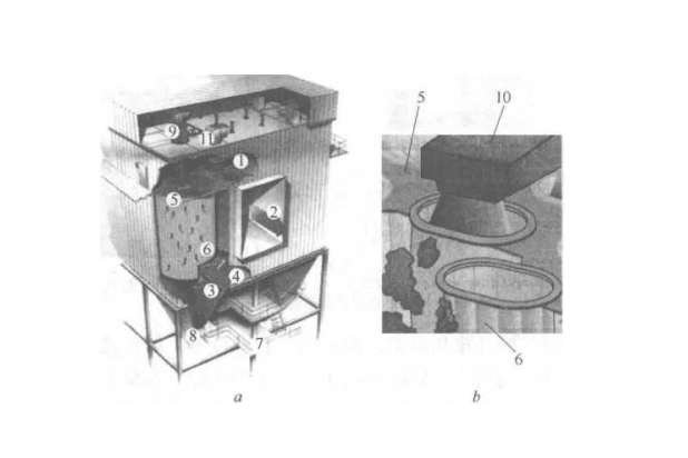 分室反吹袋式除塵器主要由箱體,濾袋,灰斗,反吹風切換閥門和管道以及進氣和排氣管道組成.