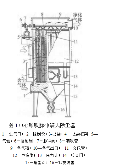 袋式除塵器的脈沖噴吹清灰是利用壓縮氣體為清灰介質,通過噴吹機構將壓縮氣體瞬間釋放產生高速氣流,同時誘導數倍于己的二次氣流一同噴入濾袋,從而使濾袋得以清灰.