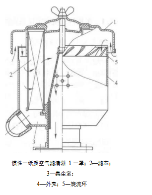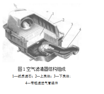 小轎車上普遍使用的干式濾清器,由空氣濾清器外殼,濾芯,濾清器蓋等組成.
