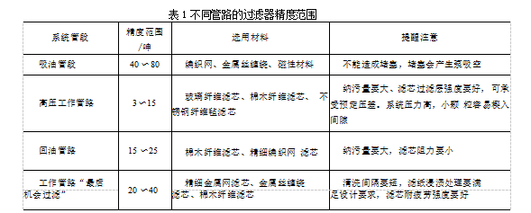根據高壓工作管路需要保護元件的配合間隙,確定過濾精度.