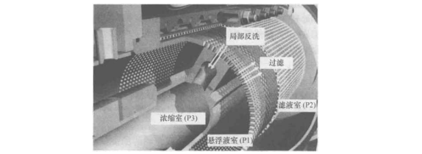 過濾介質(zhì)可以是金屬纖維織物,也可是合成纖維織物,安裝在帶孔轉(zhuǎn)鼓的外表面上,由織物的內(nèi)部或表面來截留不同尺寸的顆粒.