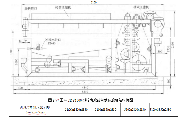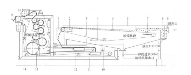 濃縮脫水一體機(jī)的結(jié)構(gòu)形式一般按濃縮形式來(lái)劃分,主要有帶式濃縮/帶式脫水,轉(zhuǎn)鼓轉(zhuǎn)篩濃縮/帶式脫水,螺旋預(yù)濃縮/帶式脫水和離心濃縮/帶式脫水4種.