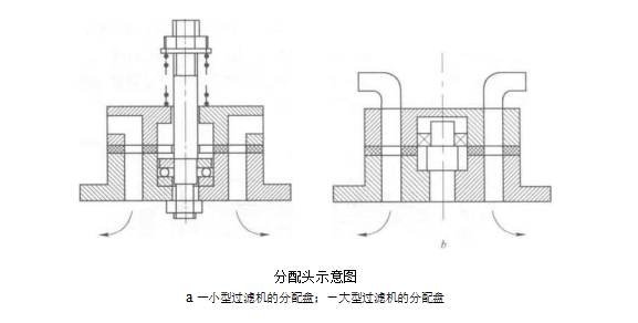 翻盤真空過(guò)濾機(jī)由濾盤組件,轉(zhuǎn)盤,導(dǎo)軌,分配頭.擋托輪,傳動(dòng)裝置,加料斗,洗滌斗,平臺(tái)等部件組成.