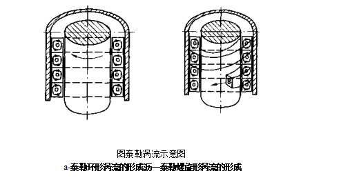 運轉時,濾漿不斷被泵入由旋轉圓筒和靜止圓筒所圍成的濾室內,并使之保持充滿狀態。旋轉的圓筒使介質上的濾渣受到剪切掃流作用,從而實現薄餅層下的過濾濃縮。濾室內牛頓流體的流動狀 態取決于圓筒的轉速,當轉速超過某極限值時,便在濾室中產生稱之為泰勒(G.I. Taylor)渦流的環狀渦流,該渦流分布在轉筒的周圍,其寬度等于內筒和外筒所圍成的間隙。相鄰的泰勒渦流具有相反的旋轉方向,雖然在渦內 有劇烈的混合現象存在,但渦間的混合卻較少。當 濾漿沿濾室的軸向以一定速度流動時,泰勒渦流便 呈螺旋狀連接起來,并一邊繞內筒旋轉,一邊沿軸向移動,由于泰勒渦流阻止了軸向液流的逆流和短路,因此內、外圓筒間的液流為理想的柱狀流。又由于泰勒渦流的剪切作用,使濾渣從介質上被掃流掉,因此才得以實現薄餅層下的過濾濃縮。