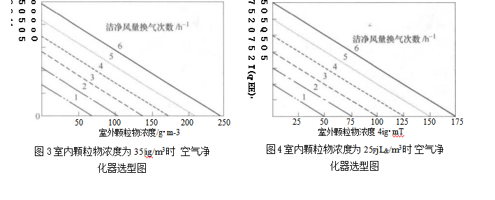 對比圖34可發現,要求室內顆粒物濃度越低,則空氣凈化器的潔凈風量換氣次數需越大